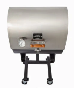 The carbon steel cooking chamber and fire chamber is made of 12 gauge carbon steel.